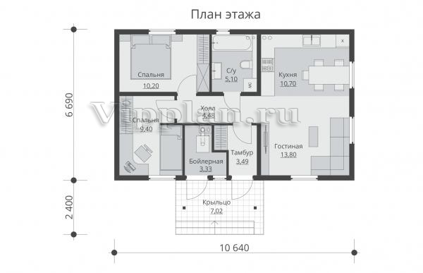 | Размеры дома: | 6.69м×10.64м |